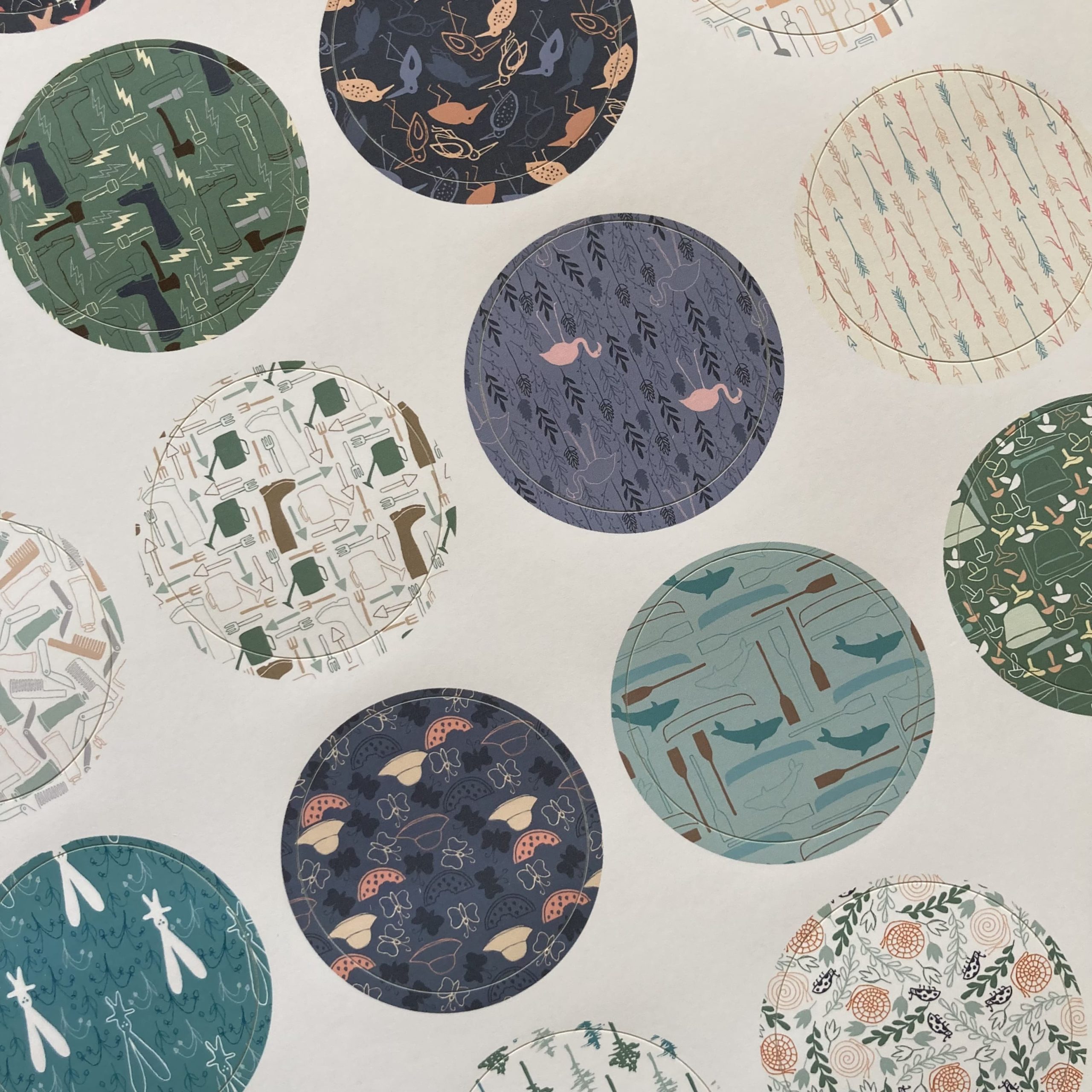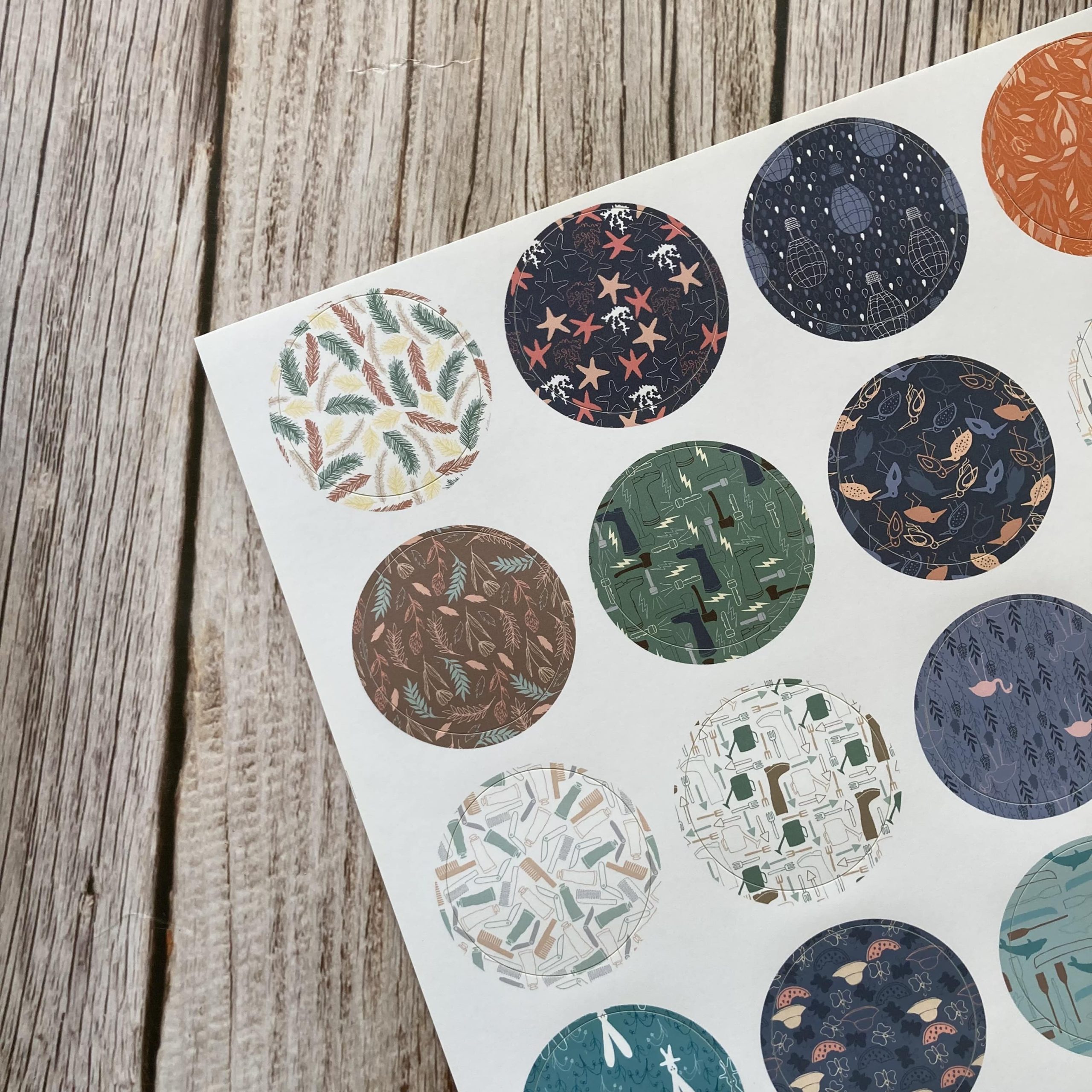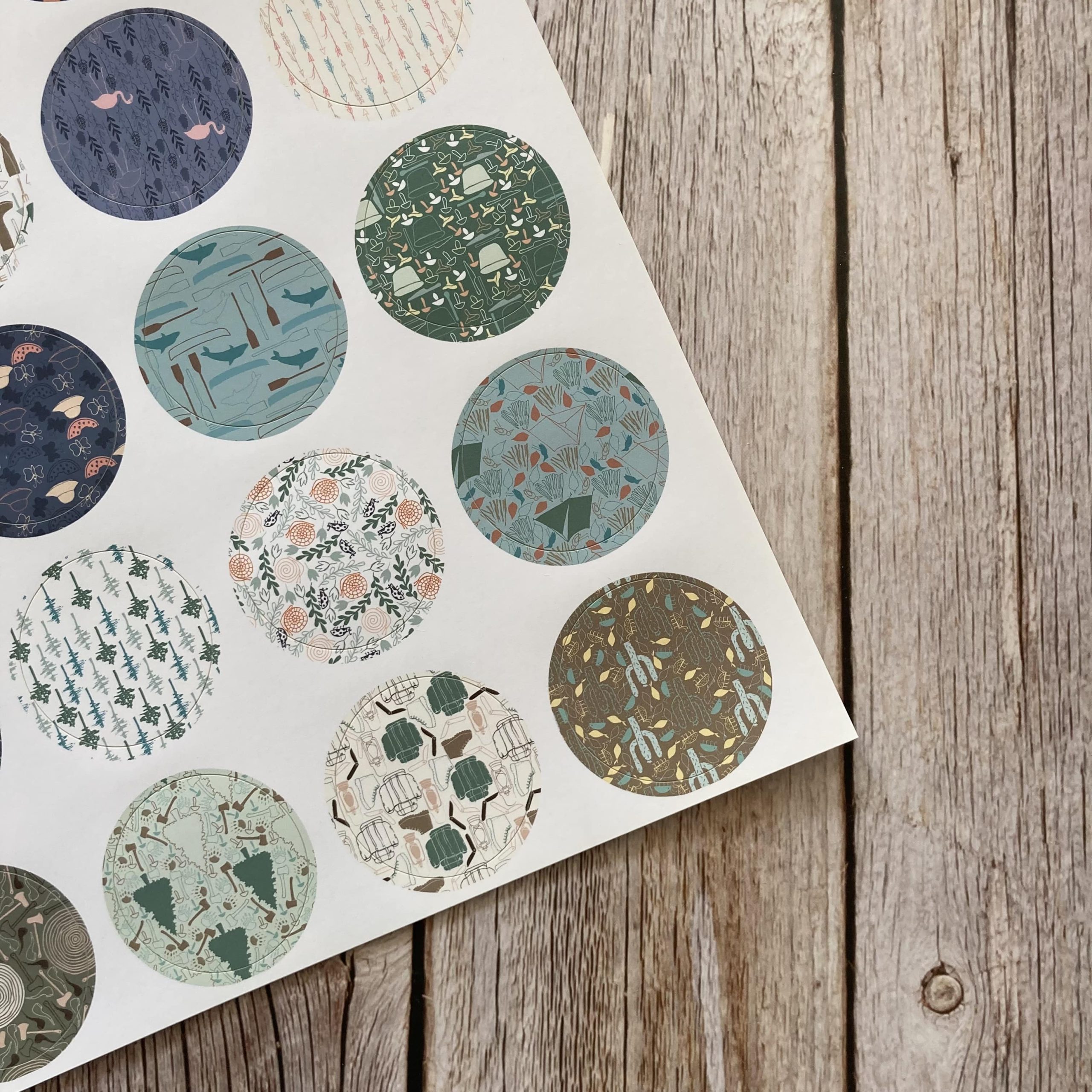 Dekorativní samolepky se vzorovanými motivy. Předsekaná kolečka o průměru 4 cm. Stačí vyloupnout! Kolečka jsou vhodná do diářů, na journaling a spoustu dalších kreativních papírových hrátek.