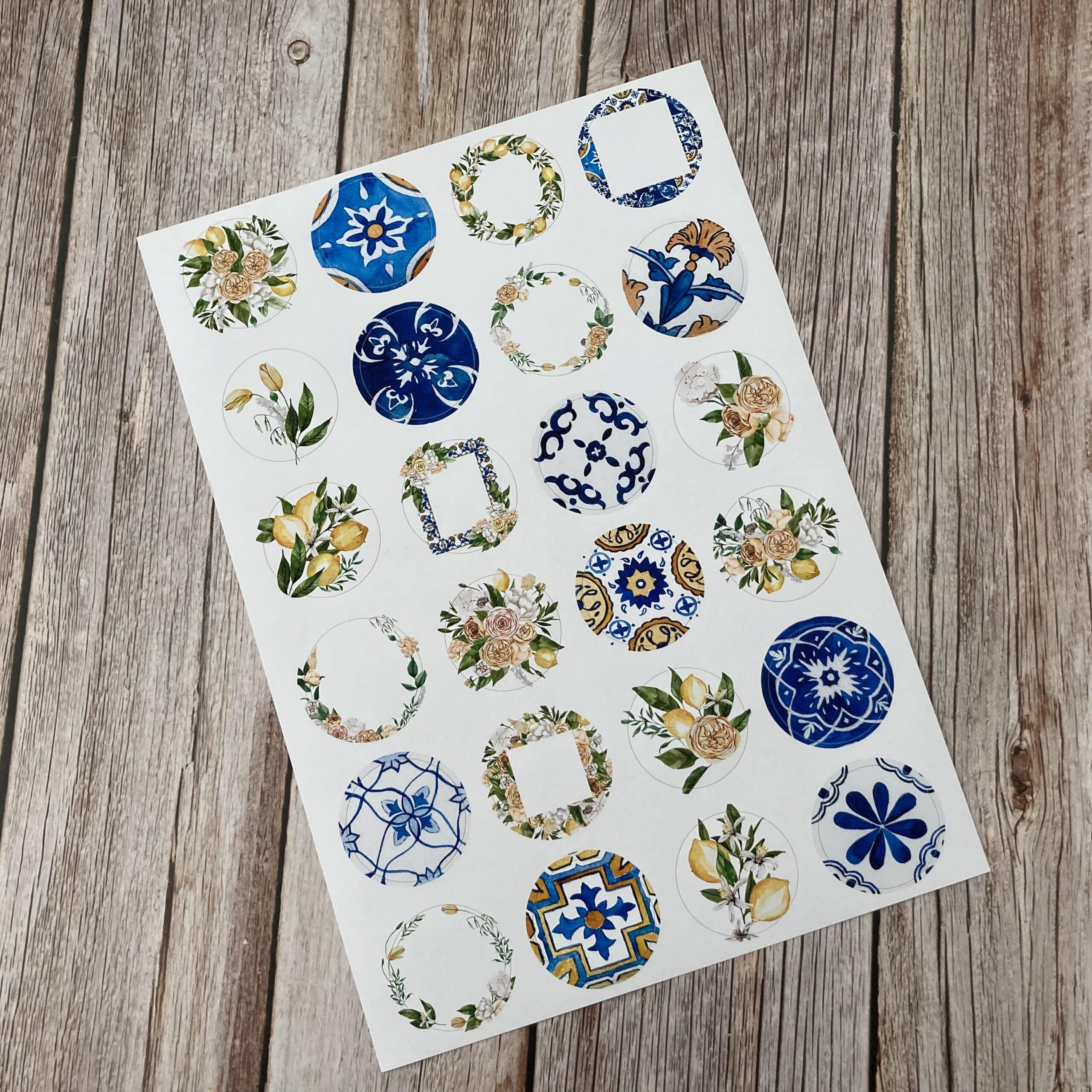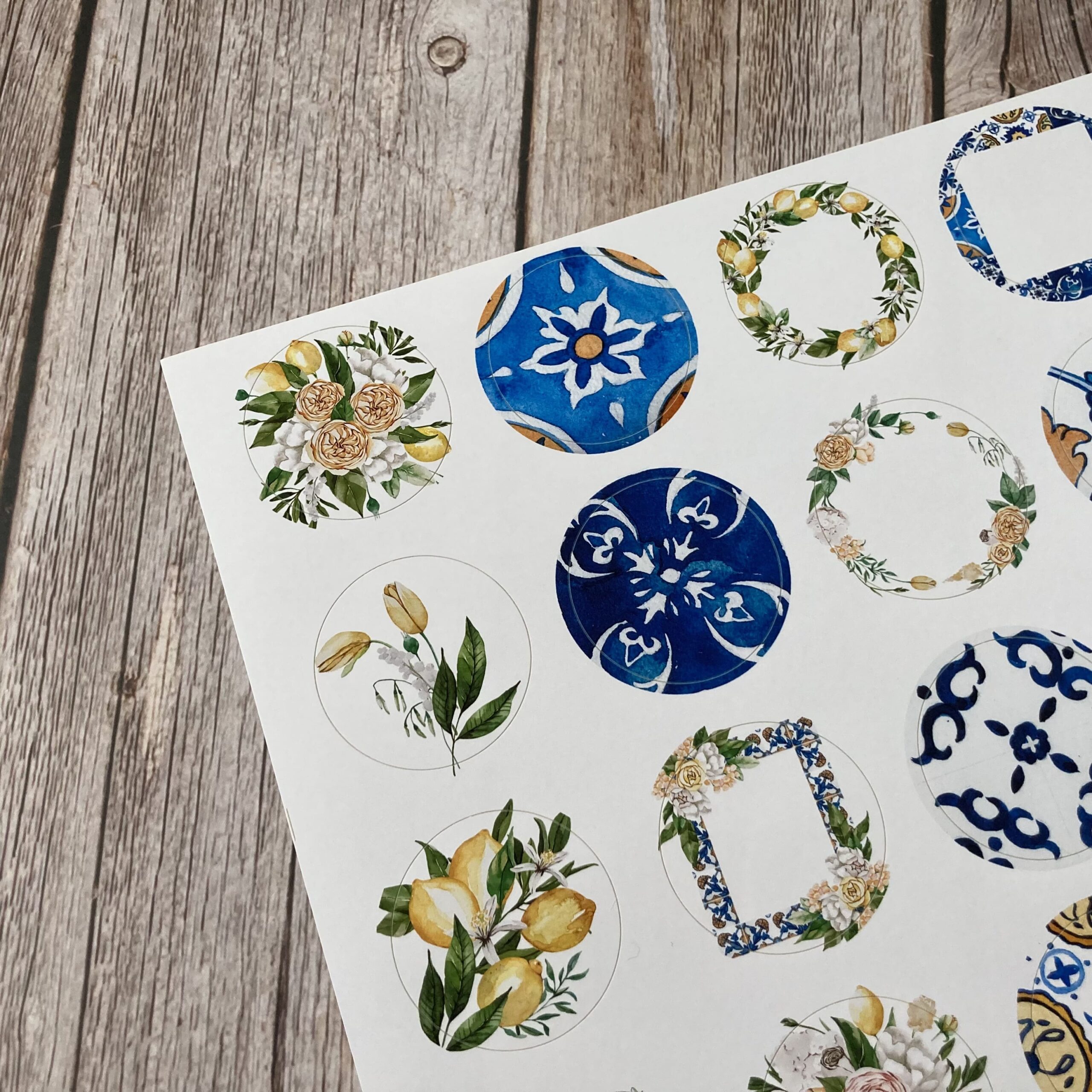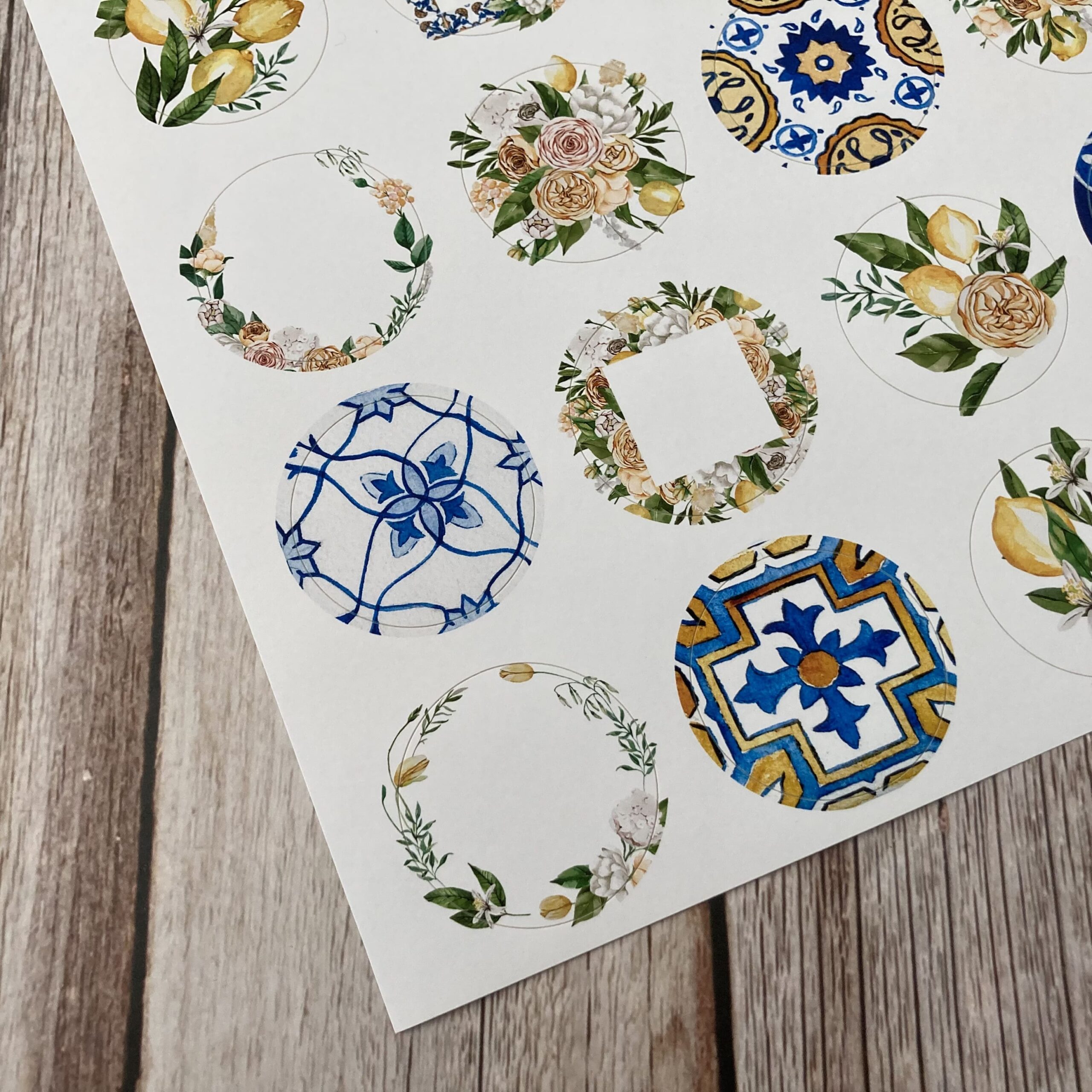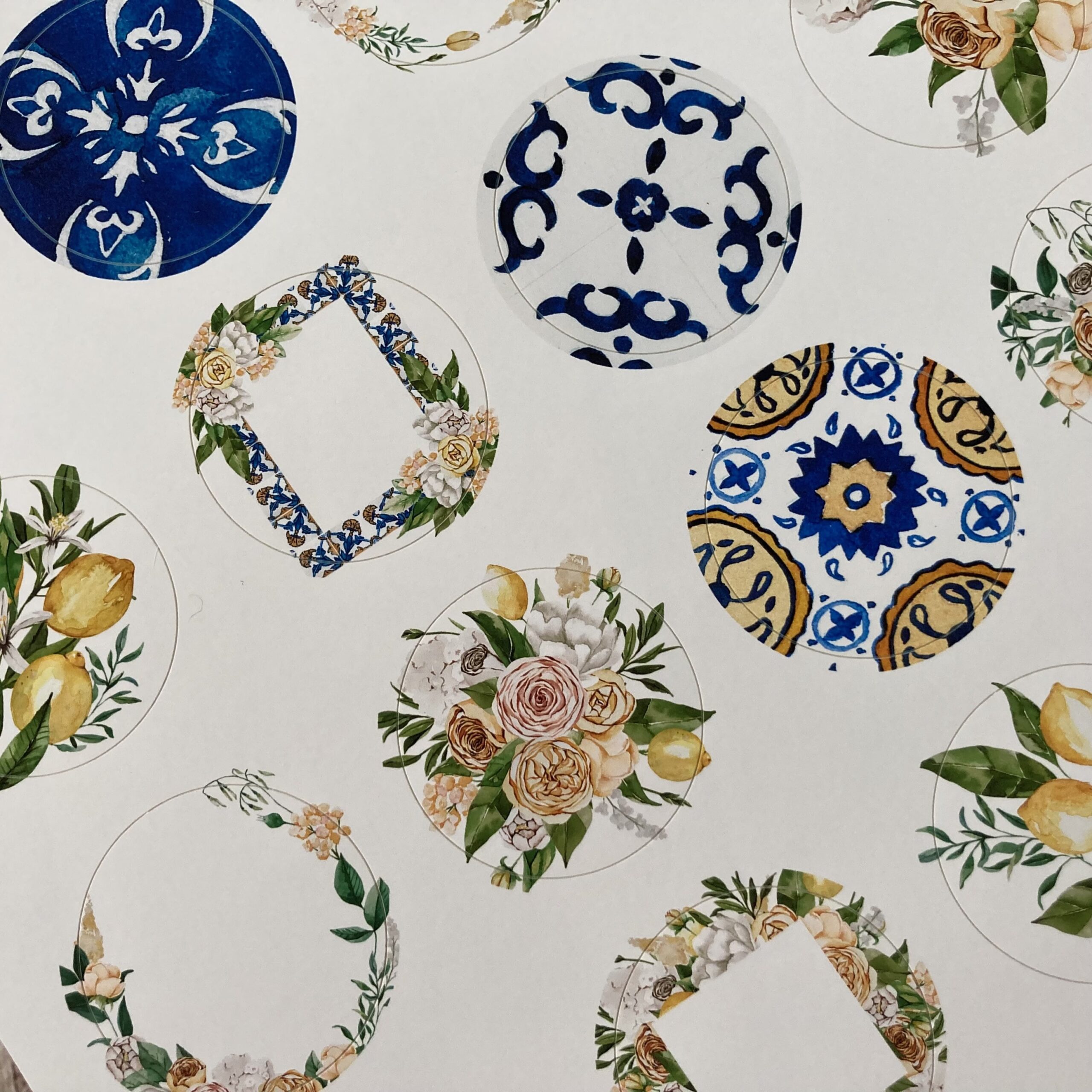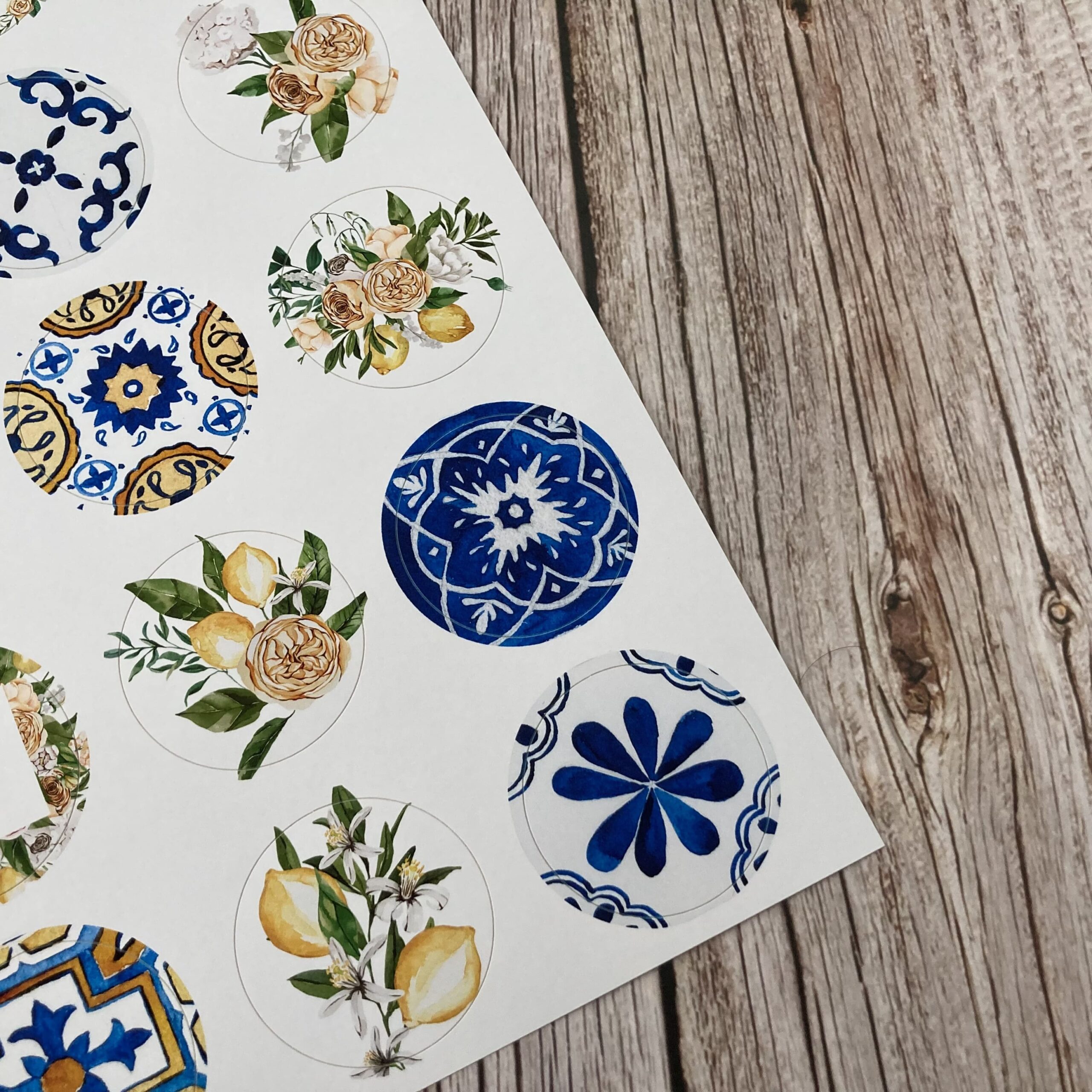 Za oknem zrovna bubnuje déšť, ale díky těmto samolepkám jsem se ocitla na dovolené ve Středozemí. Předsekaná kolečka o průměru 4 cm. Stačí vyloupnout! Kolečka jsou vhodná do diářů, na journaling a spoustu dalších kreativních papírových hrátek.